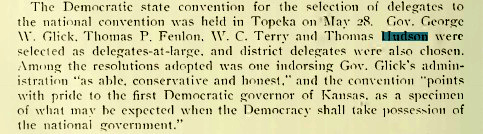 | 1885 | Fredonia, KS | C.S. Reid | 23 | KY KY | Lawyer; He and Hayes are near, possibly with, Hudson | ||